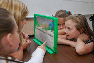 Students in the after-school programs at Meek and Addison Elementary continue learning about positive actions they can take to be stewards of the environment. During one session the students discussed rules of the outdoors -- from no littering to staying on trails. After reading the book "Trapper" they then talked about other rules that might include no collecting of natural items in the outdoors. In another session students at Meek Elementary developed puppet shows after learning about different things that can be done at home to conserve energy - from turning off the lights when you leave a room, to recycling aluminum and plastic items.