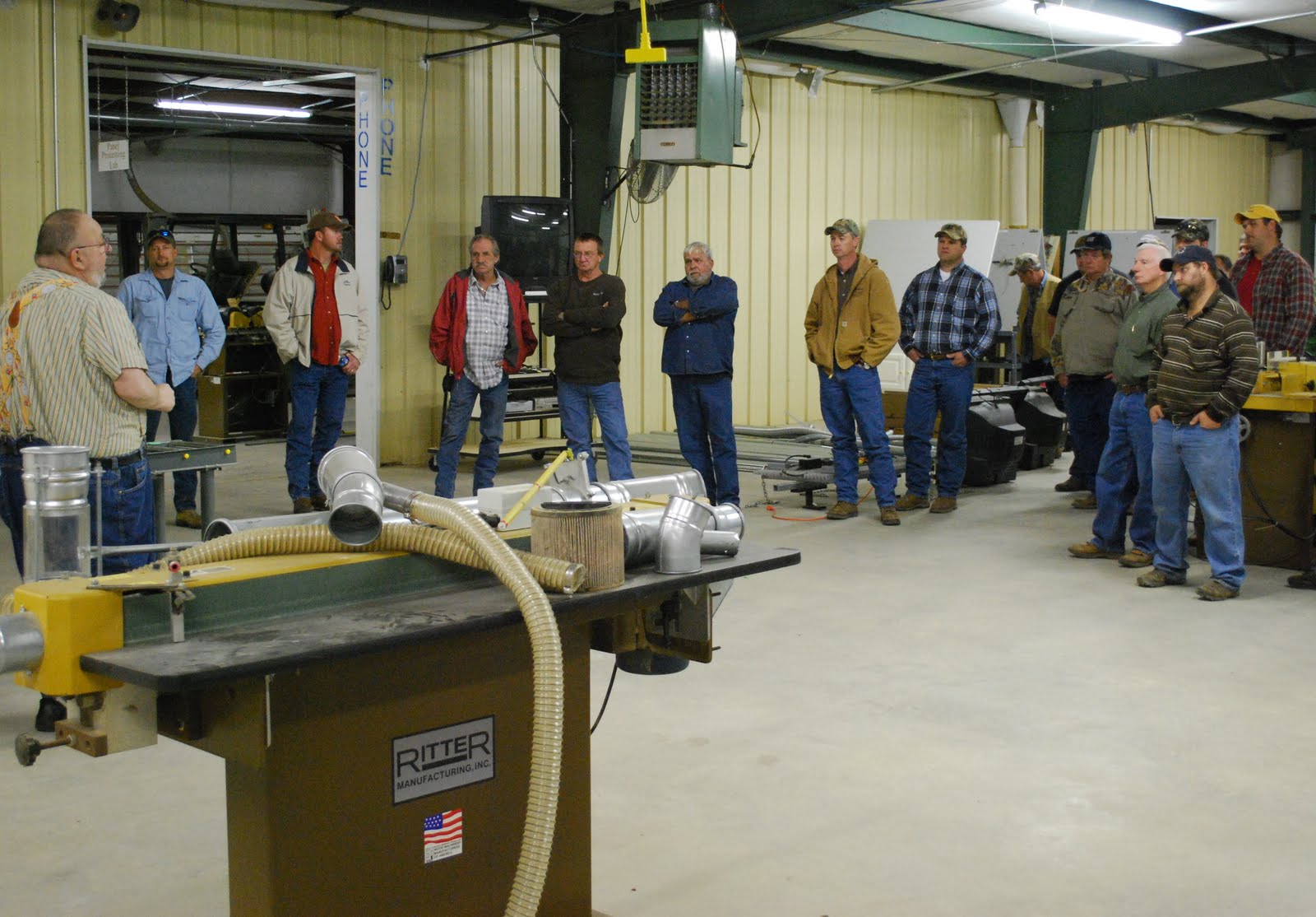 Bruce Jackson and James Glasgow led a tour of the Alabama Center for Advance Woodworking Technology (ACAWT). The tour began with an introductory video of the center's capabilities. Then, Bruce Jackson and James Glasgow gave a tour of the center which included the video production lab, the solid wood lab, the maintenance area, the panel processing lab, the computer lab, the CNC trainer lab, the finishing lab, and the classroom. Here are few photos from the tour of the center.